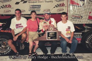 Tony Hirschman (left) poses with his family in victory lane at Richmond in 2001.