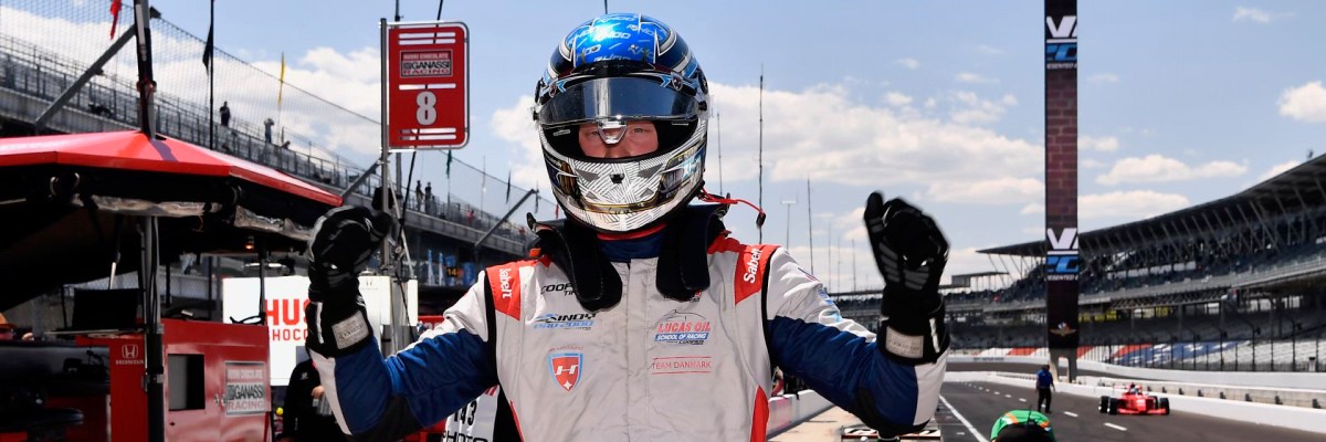 SPEEDWAY, Ind. – A thrilling first of three races that will comprise the Indy Pro 2000 Grand Prix of Indianapolis Presented by Cooper Tires this afternoon saw Jay Howard Driver Development’s Christian Rasmussen, from Copenhagen, Denmark, cross the yard of bricks a scant 0.0713 of a second ahead of Braden Eves (Exclusive Autosport), from New Albany, Ohio. The two most recent Cooper Tires USF2000 champions are now tied on points at the head of this year’s Indy Pro 2000 Championship Presented by Cooper Tires, the next rung on the Road to Indy open-wheel racing development ladder, with five out of 18 races in the books.