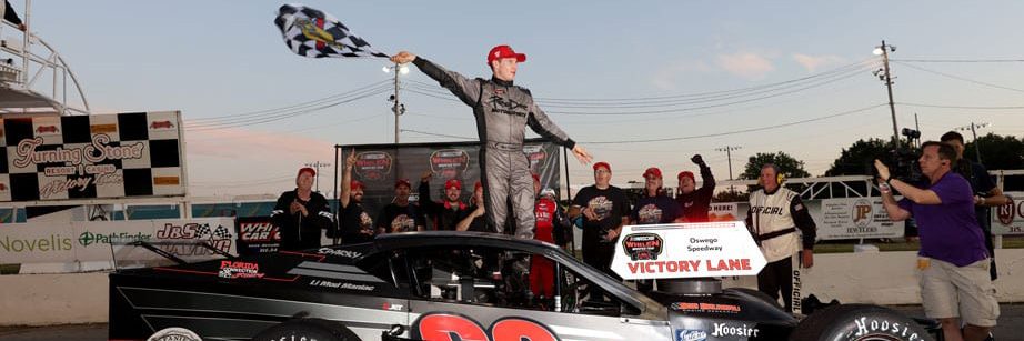 Series points leader Patrick Emerling piloted his No. 07 Chevrolet to a third-place finish, just ahead of Justin Bonsignore (No. 51), who is second in the points standings and was the most recent Tour winner at Oswego prior to Saturday. Kyle Ebersole completed the top five in his No. 5 Ford.