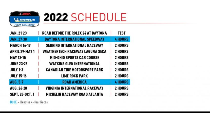 The IMSA Michelin Pilot Challenge returns in 2022 with a familiar slate of 10 races, all run as companion events to the WeatherTech Championship.
