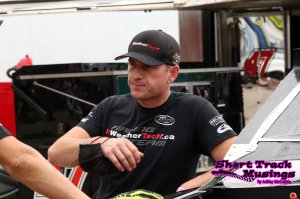 L.P. Dumoulin: Well, I think we had a good solid race, with some beating and banging which you always have on the short tracks. It’s different racing, which you always seem to have with two races in the same day. We got a lot of rain during the day so we had to try and adjust to all of it. The set-up was more for an afternoon set-up on the car for Sunset, and we had a good qualification (third), and we saw the rain coming and knew there’d be a lot of issues at night as the track conditions are so much different then.