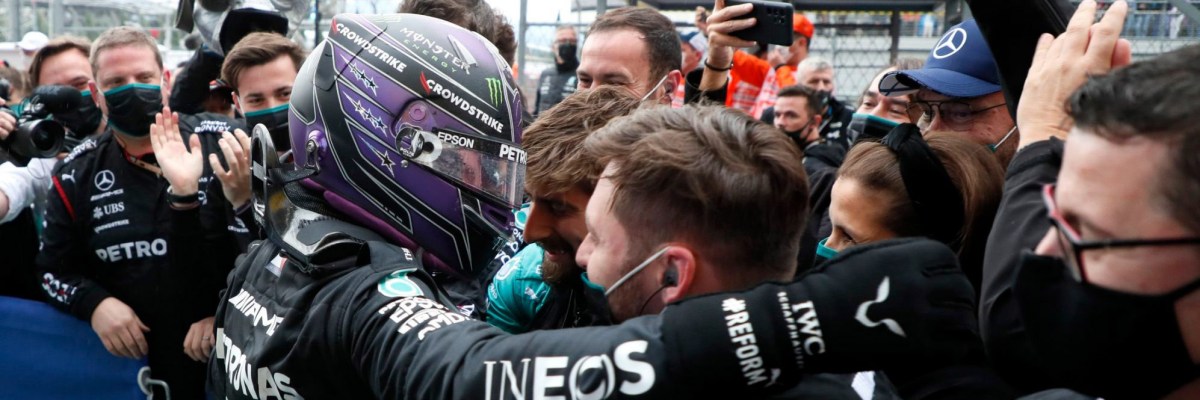 Lewis Hamilton took his 100th Grand Prix victory in a Russian Grand Prix that started in dry conditions and ended under rain, the Mercedes driver making a late switch to intermediate tyres to take the lead when pole-sitter Lando Norris agonisingly slid out of the lead with just two laps left. Max Verstappen made it from P20 to P2, and Ferrari’s Carlos Sainz took third having started second.