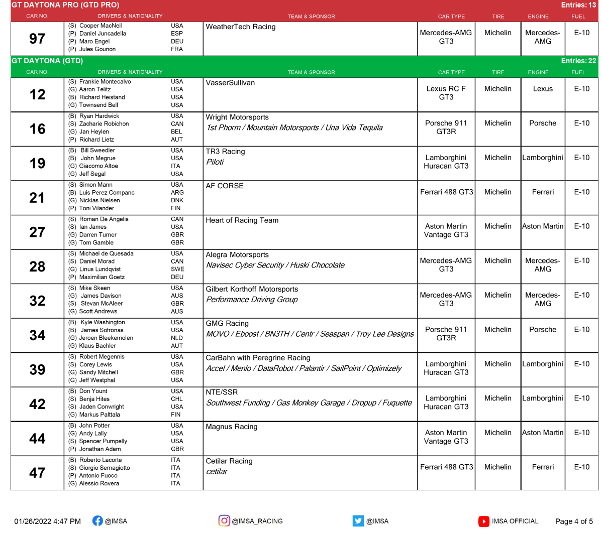 ‘2022 Rolex 24 Official Entry List-4’