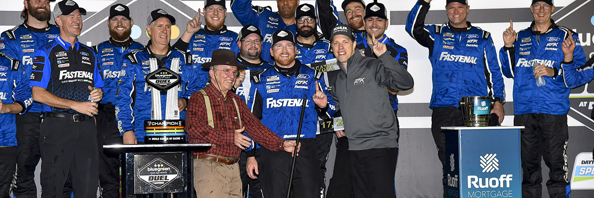 “Yeah, what a way to start Speedweeks out here, to put both RFK Ford Mustangs in Victory Lane, give Fastenal their first win on a Cup car,” Buescher said. “It’s not the big show, but we’ve got a really good hotrod here.