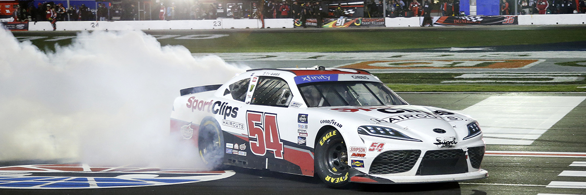 The last lap was the only one Gibbs would lead, but it propelled him to his second victory in five starts this season and his sixth in 23 NASCAR Xfinity Series races.