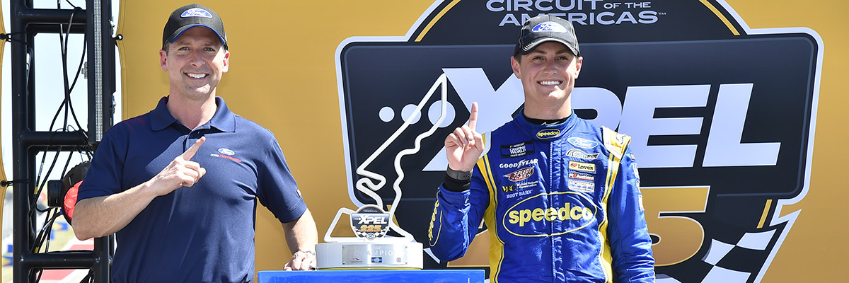 AUSTIN, Texas – Ultimately, Zane Smith was out front when it paid off Saturday afternoon at the Circuit of The Americas road course. He led only 11 of the 46 laps – winning Stage 1, Stage 2 and then taking the race lead with two laps remaining in the second overtime period to earn the victory in the XPEL 225 NASCAR Camping World Truck Series race.