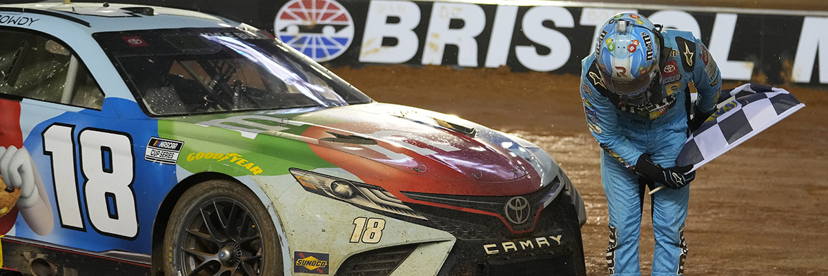BRISTOL, Tenn. – Kyle Busch has a special fondness for Bristol Motor Speedway, but the driver of the No. 18 Joe Gibbs Racing Toyota needed a huge stroke of luck on Sunday night to rekindle his love affair with the half-mile track.