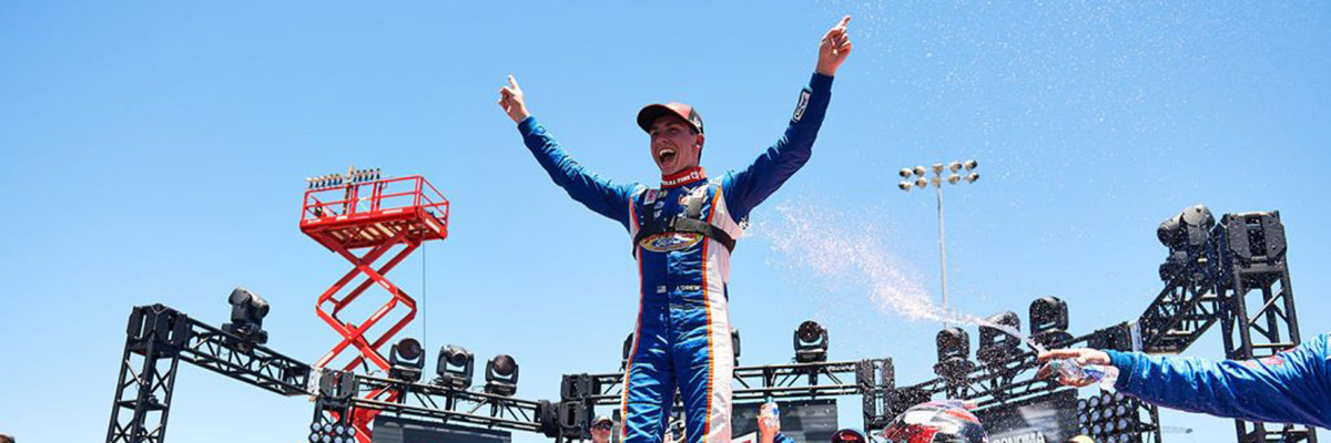 Saturday’s General Tire 200 at Sonoma Raceway did not end with winner No. 201 in West Series history, because Drew repeated his feat from a week ago. The 22-year-old from Fullerton, California, won another shortened event to mark his second career victory.