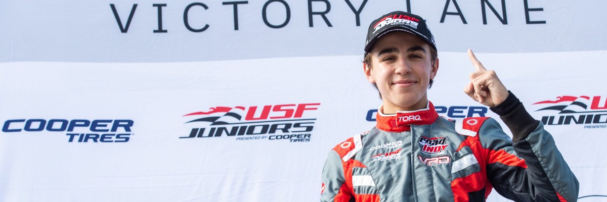 LEXINGTON, Ohio – Honors were shared today as the USF Juniors Presented by Cooper Tires series wrapped up its Cooper Tires Grand Prix of Mid-Ohio weekend. Alessandro De Tullio, from Miami, Fla., scored his fourth victory this morning for VRD Racing while Canadian Mac Clark gave himself a cushion in his quest to win a scholarship valued at over $220,000 to move onto the Road to Indy Presented by Cooper Tires in 2023 by winning the final race of the triple-header weekend.