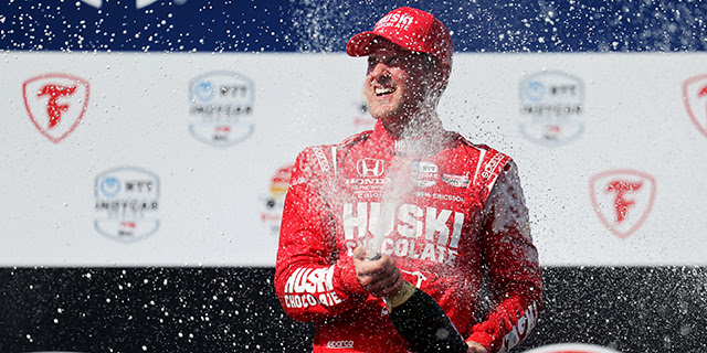 Ericsson, who started fourth, took the lead when O’Ward slowed suddenly exiting Turn 14 on Lap 97 of the 100-lap race when his engine shut off momentarily due to a brief fire in the plenum chamber of his powerplant.