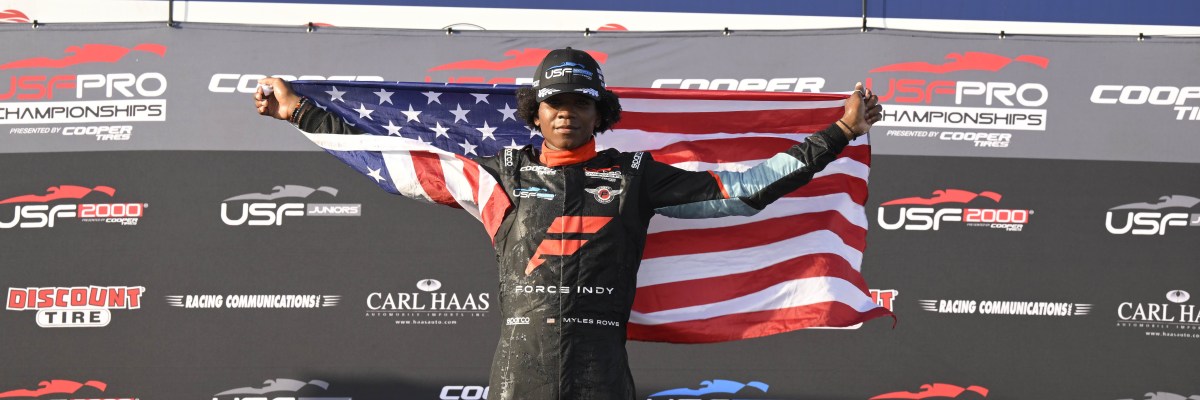 Rowe, who started fifth, immediately began to work his way forward, taking the lead on Lap 10 and edging away to claim his first win in USF Pro 2000 Presented by Cooper Tires on his debut weekend. Rowe, a university student based in Brooklyn, N.Y., also won last year at St. Petersburg in USF2000 Presented by Cooper Tires.