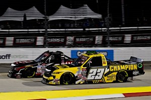 #23: Grant Enfinger, GMS Racing, Champion Power Equipment Chevrolet Silverado and #4: Chase Purdy, Kyle Busch Motorsports, Bama Buggies Chevrolet Silverado