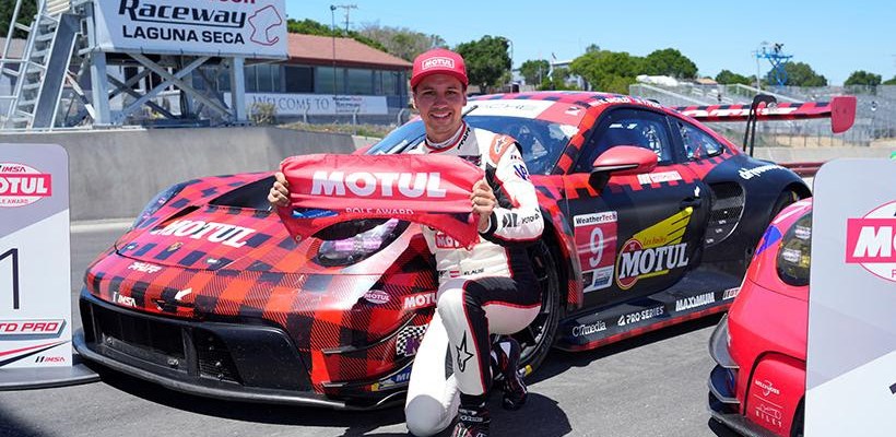 “It’s just amazing,” he said after placing the Motul Pole Award sticker on the storied plaid Porsche. “First time here at Laguna and to finish with the pole position. Thanks to my team and to Patrick. We pushed each other quite hard. Everything is new for me this season.”