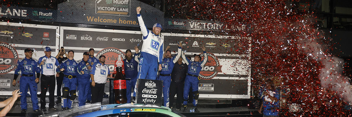 With Buescher’s repeat win, Wallace clinched the 16th and final spot in the series Playoffs on points. Hemmed in by an armada of Fords after the overtime restart on Lap 162, Elliott—whose only path to the Playoffs was victory on Sunday—couldn’t move forward.