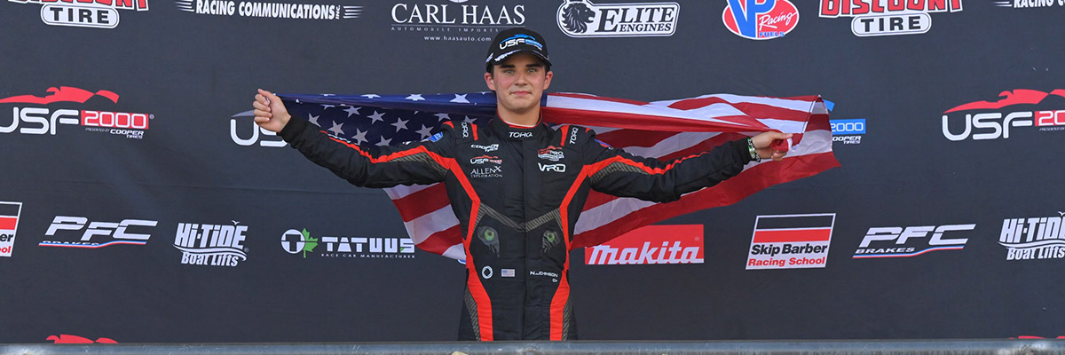 AUSTIN, Texas – Nikita Johnson of VRD Racing has taken the USF Pro 2000 Championship Presented by Cooper Tires by storm on his debut race weekend at Circuit of The Americas. The 15-year-old from Gulfport, Fla., not only becomes the youngest winner in the category but also becomes the first driver to win on all three levels of the current USF Pro Championships Presented by Cooper Tires ladder.