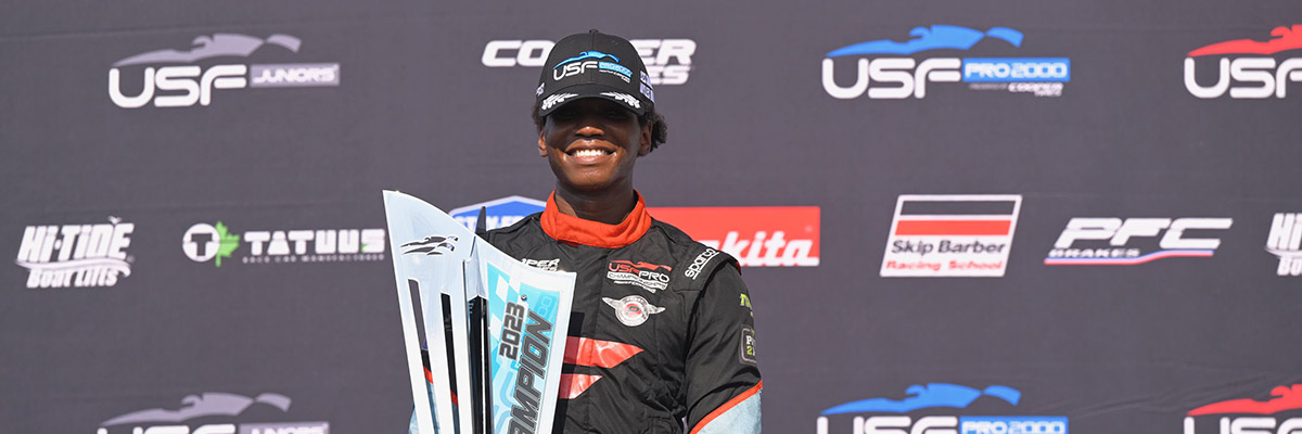 PORTLAND, Ore. – Myles Rowe and Michael d’Orlando both achieved their goals during this afternoon’s exciting second leg of the VP Racing Fuels Grand Prix of Portland. Pabst Racing with Force Indy’s Rowe, from Brooklyn, N.Y., clinched the USF Pro 2000 Presented by Cooper Tires championship – as well as a lucrative Discount Tire Driver Development Scholarship valued at $664,500 to ensure graduation to INDY NXT by Firestone in 2024 – with a well-judged third-place finish, while d’Orlando, from Hartsdale, N.Y., once again demonstrated his own credentials with a flag-to-flag victory for Turn 3 Motorsport.
