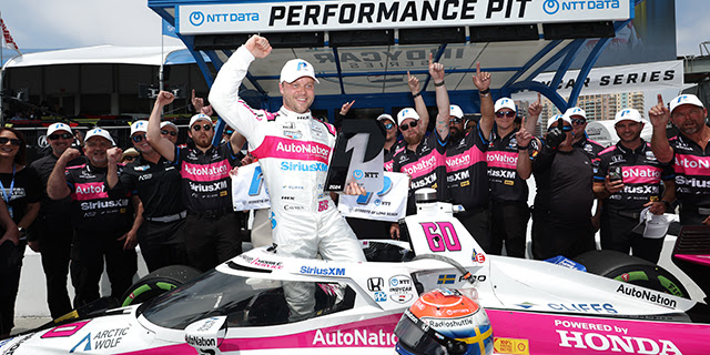 Rosenqvist moved from Arrow McLaren to Meyer Shank Racing after the 2023 season, and he delivered MSR its first-ever pole for an NTT INDYCAR SERIES points-paying race with a lap of 1 minute, 6.0172 seconds in the No. 60 AutoNation/SiriusXM Honda on the 11-turn, 1.968-mile temporary street circuit.