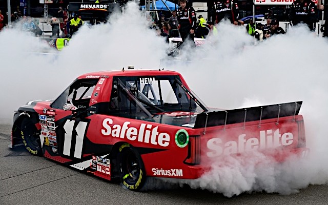 The victory was a welcome turnaround after Heim’s truck was disqualified from second place May 24 at Charlotte for three lug nuts not safe and secure. Heim won for the fourth time this season—all within the last eight races—the second time at Gateway and the ninth time in 53 career starts.