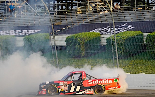 The Georgian’s No. 11 TRICON Garage Toyota led Grant Enfinger’s Chevrolet across the finish line by .867-second to take his 10th career victory – quickly re-establishing himself as the race leader – again – on the final re-start with three laps remaining.
