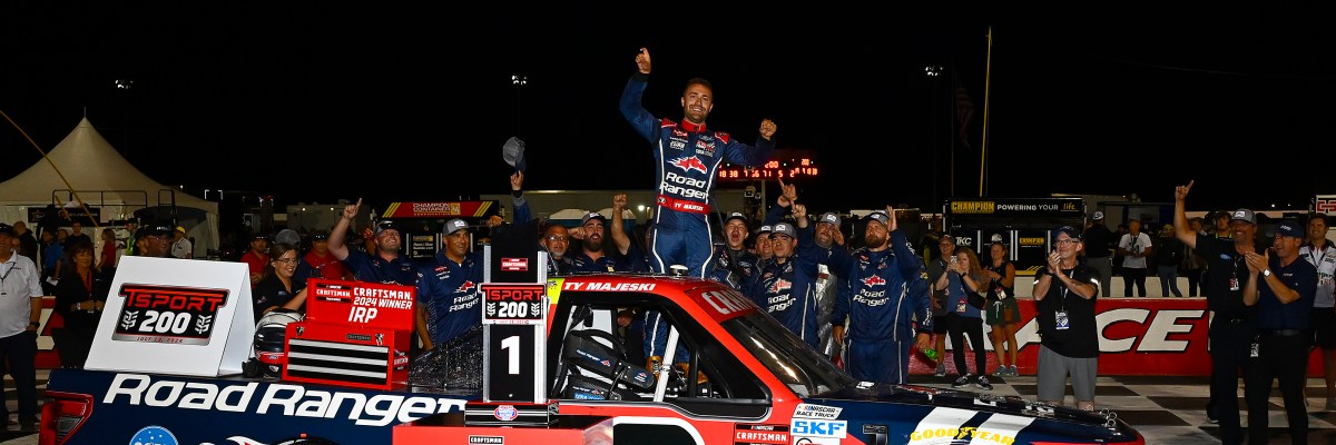INDIANAPOLIS — Ty Majeski’s victory in Friday night’s TSport 200 at Lucas Oil Indianapolis Raceway Park wasn’t the sort of dominating performance he enjoyed last year—until the final stage of the NASCAR CRAFTSMAN Truck Series race.