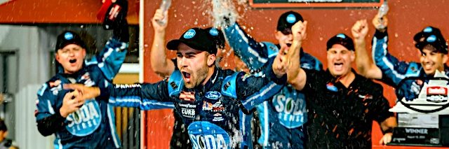 Majeski’s No. 98 ThorSport Racing Ford led Christian Eckes’ No. 19 Chevy across the finish line by a slight .936-seconds to earn the win and vindicate a gut-wrenching loss at the three-quarter mile Richmond track from a year ago when he dominated the race only to lose the lead with four laps remaining.
