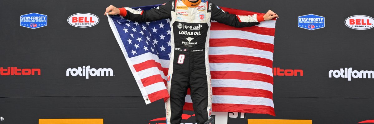 The race was restarted with less than six minutes remaining, after which Costello maintained his dominance and sped home just over three seconds clear of the field. Teammate Evagoras Papasavvas, from Loveland, Ohio, took the flag in second, but later fell back to sixth with the addition of a 10-second penalty after he inadvertently tipped Garcia’s title-contending teammate Sam Corry, from Cornelius, N.C., into a spin at Turn Two with three laps remaining.