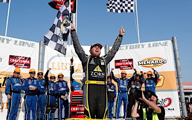 Riggs, son of former NASCAR competitor Scott Riggs, took the lead from Ty Majeski with 53 laps remaining and pulled away to a solid 1.547-second victory over the Wisconsin native and a super-motivated group of Playoff drivers, making the rookie driver’s effort all the more impressive.