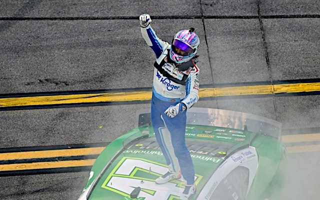 Stenhouse, the 36-year-old Mississippi native who is not Playoff-eligible, hoisted his fourth career trophy – all coming at superspeedway tracks – and first in 65 races. His No. 47 JTG-Daugherty Chevrolet led 19 of the 195 laps, including the all-important last one after a side-to-battle with six-time Talladega winner Keselowski and this year’s Daytona 500 winner Byron.