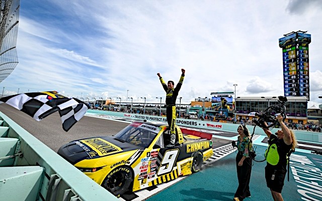 HOMESTEAD, Fla. – A strategy call from the pit box coupled with a patient move forward landed veteran Grant Enfinger his second consecutive NASCAR CRAFTSMAN Truck Series Playoff race win in Saturday’s Baptist Health 200 at Homestead-Miami Speedway while his closest competitors ran out of fuel behind him in the closing laps.