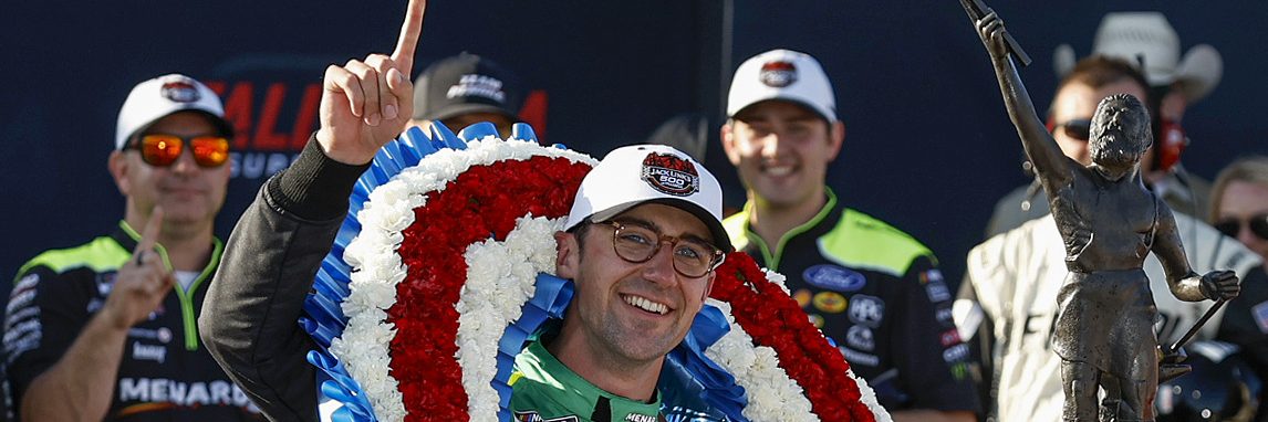 “It’s about time one of us wins these things,” Logano said. “You think about the amount of laps led by Team Penske and Ford in general and we just haven’t been able to close, so to see a couple Fords there on the front row duking it out, I wish one of them was me in a selfish way, but it’s also good to see those guys running up there and being able to click one off for Penske.”