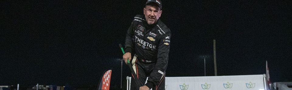 The NASCAR Canada Series penultimate event of the season delivered double the action at Delaware Speedway on Saturday night, where Donald Theetge swept both ends of the highly anticipated doubleheader.