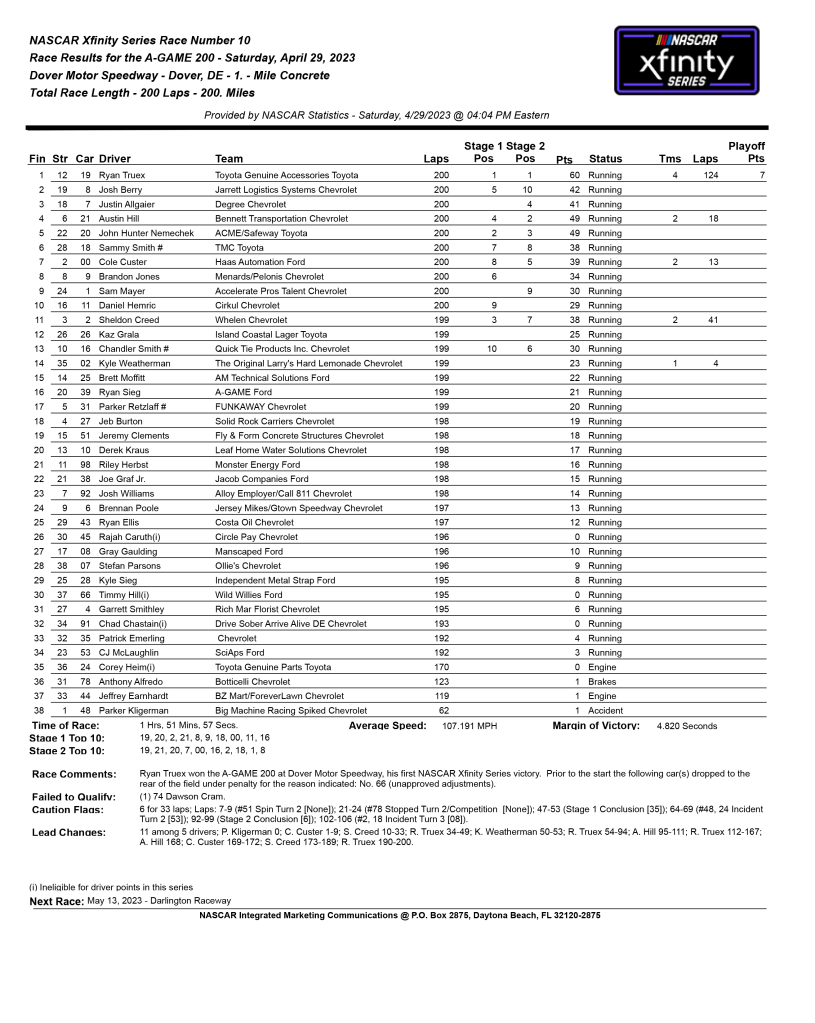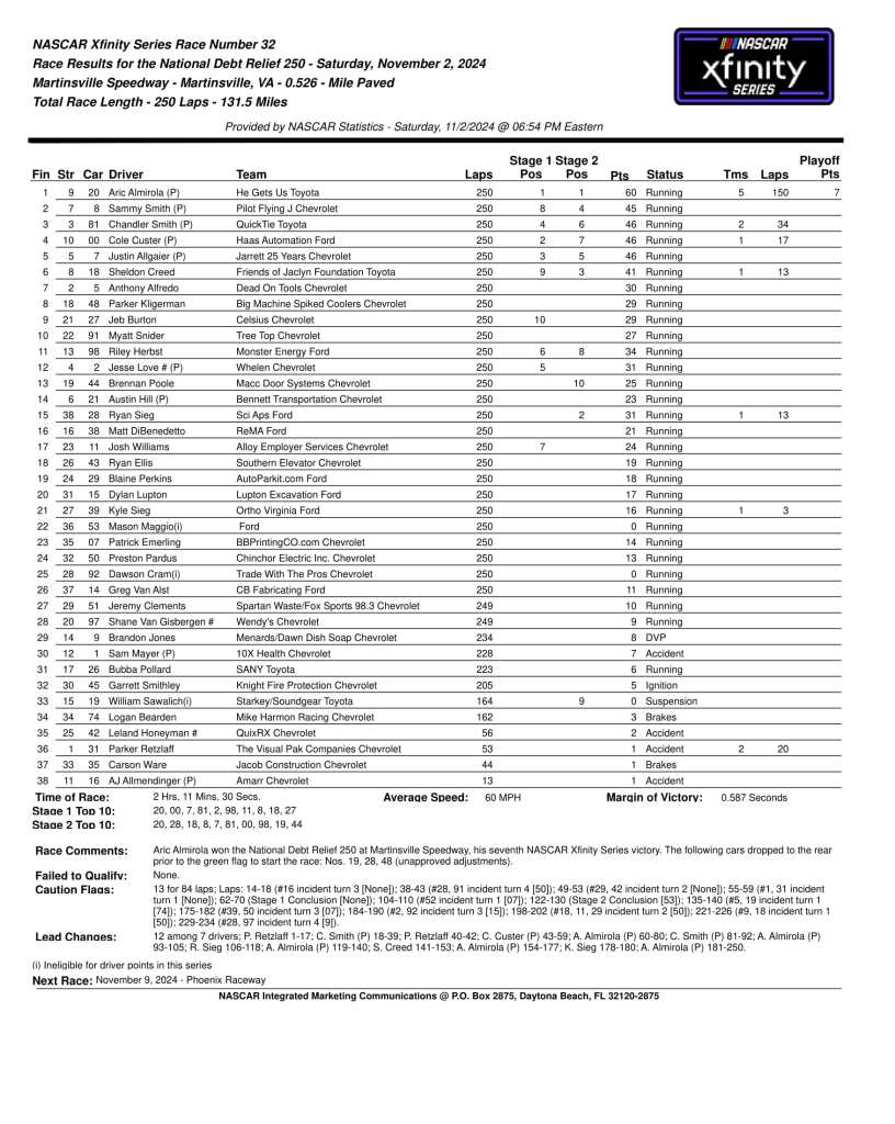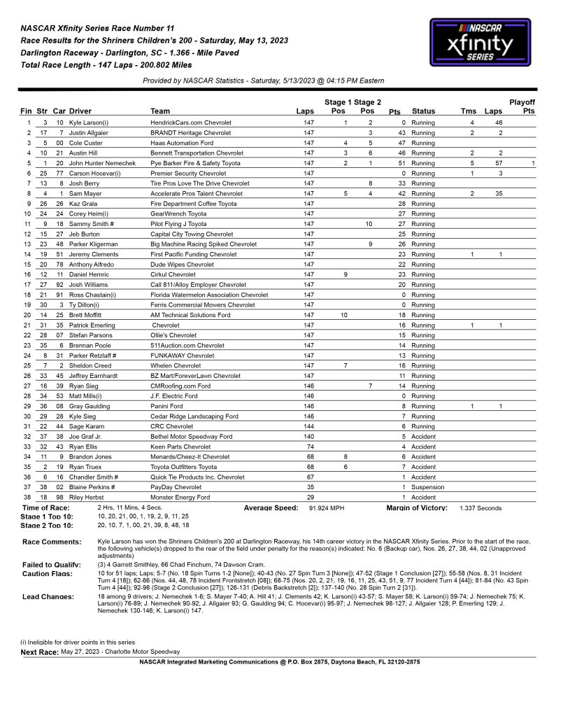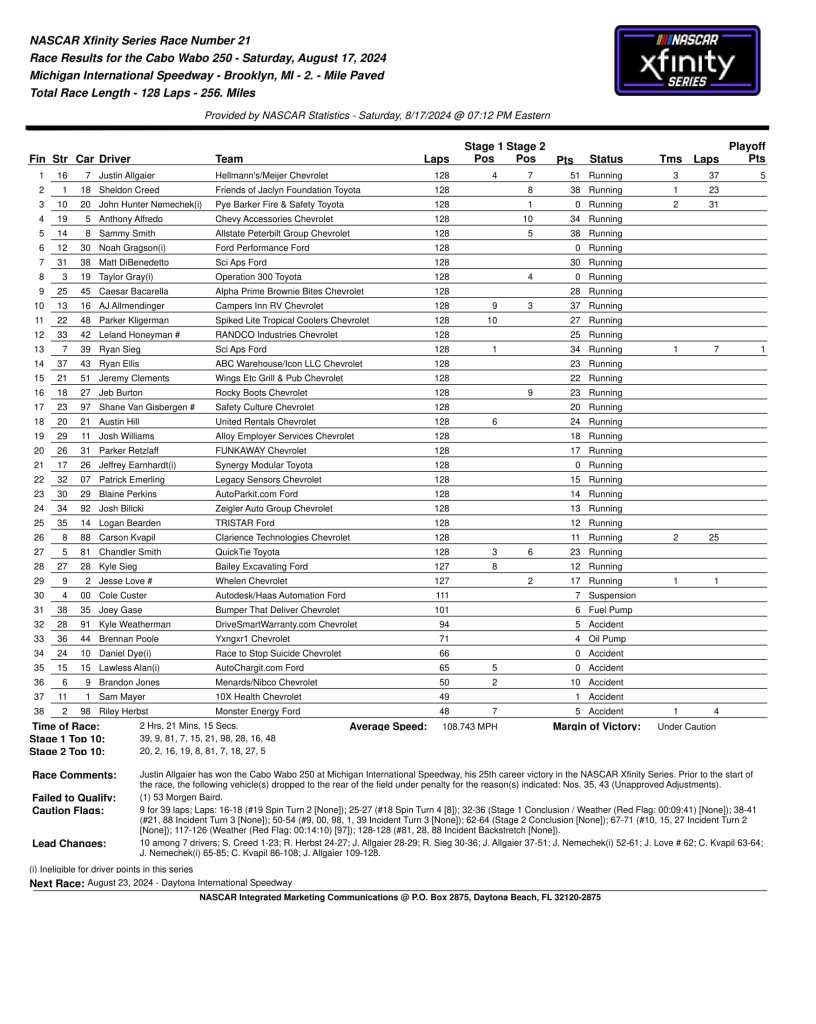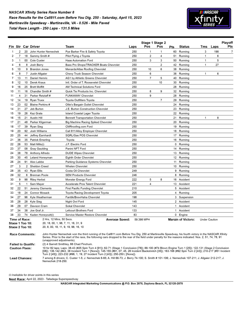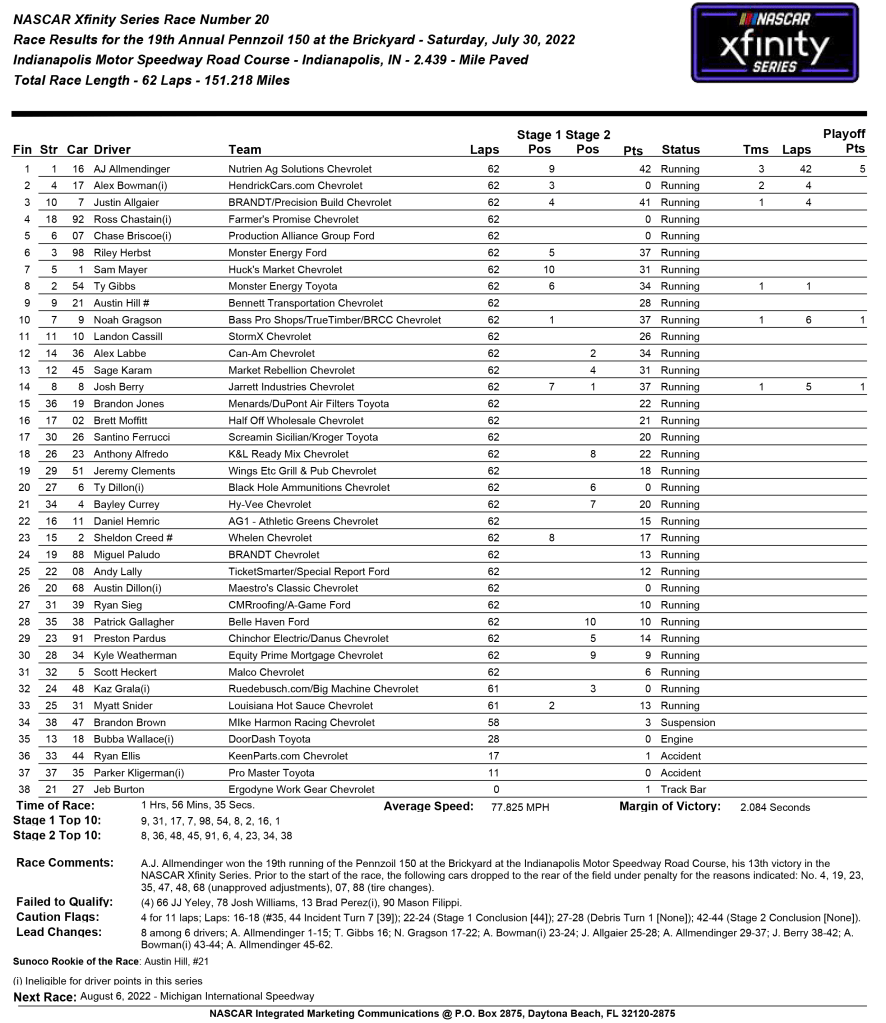 NASCAR Xfinity Series Race Results Nigel Kinrade Photography Share this: Click to share on X (Opens in new window) X Click to share on Facebook (Opens in new window) Facebook Like Loading...