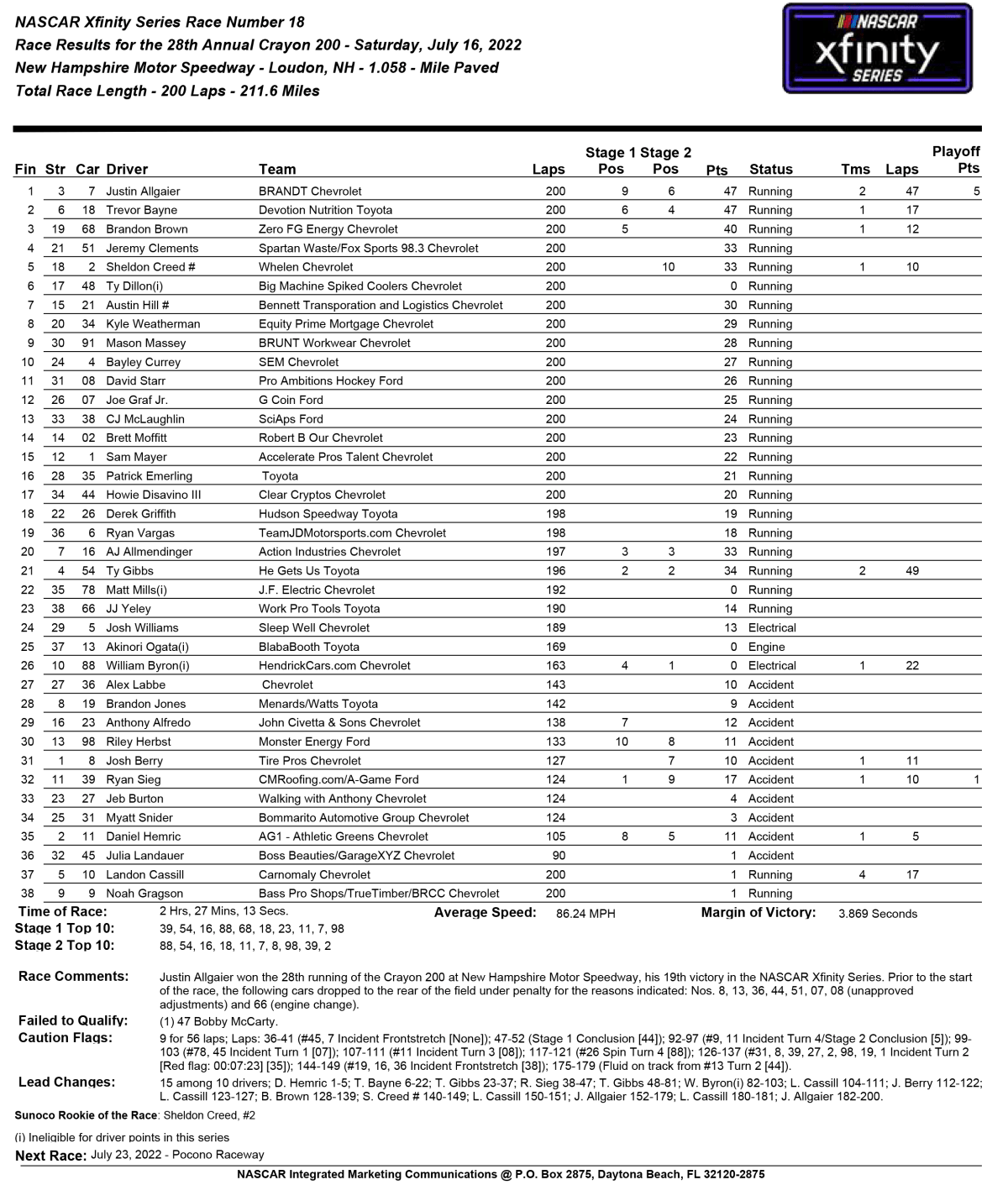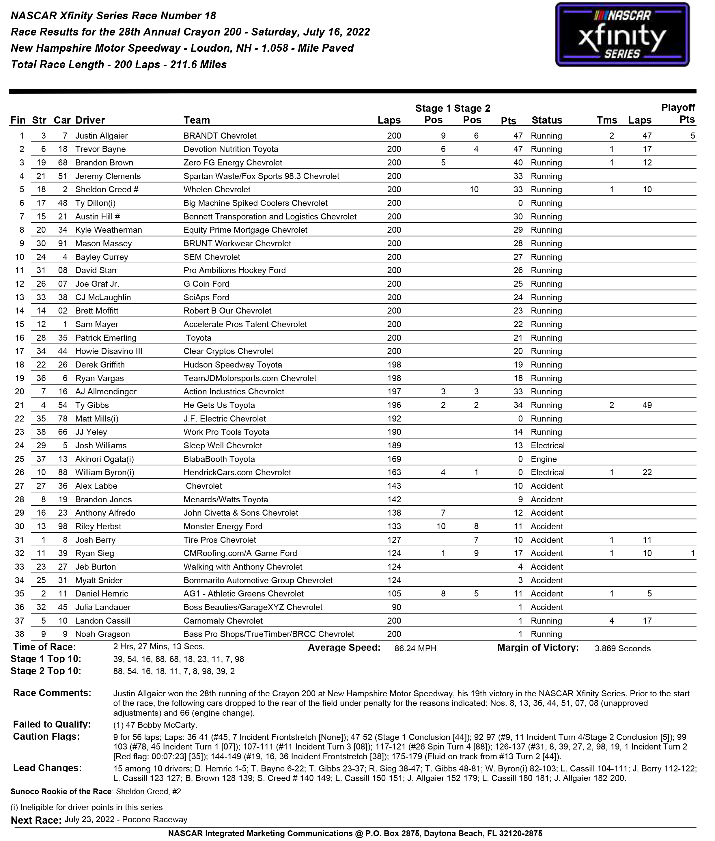 Published July 17, 2022 at 2477 × 2913 in NASCAR Xfinity Series Race Results Like Loading... ‹ Return to post Leave a comment Cancel reply Δ