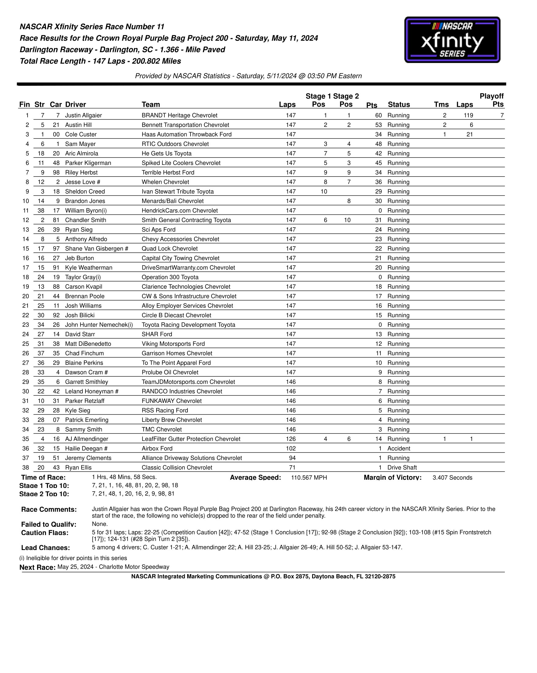 Published May 13, 2024 at 1753 × 2200 in NASCAR Xfinity Series Race Results Like Loading... ‹ Return to post Leave a comment Cancel reply Δ