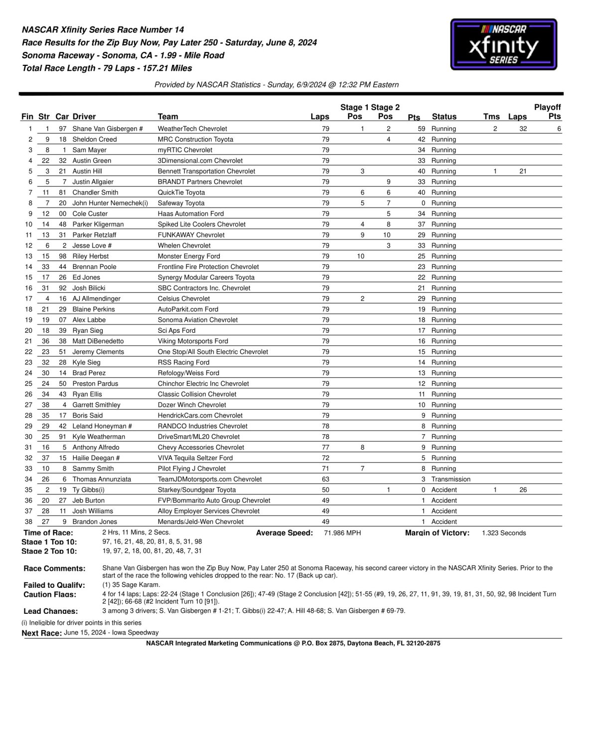 Published June 9, 2024 at 1753 × 2200 in NASCAR Xfinity Series Race Results Like Loading... ‹ Return to post Leave a comment Cancel reply Δ
