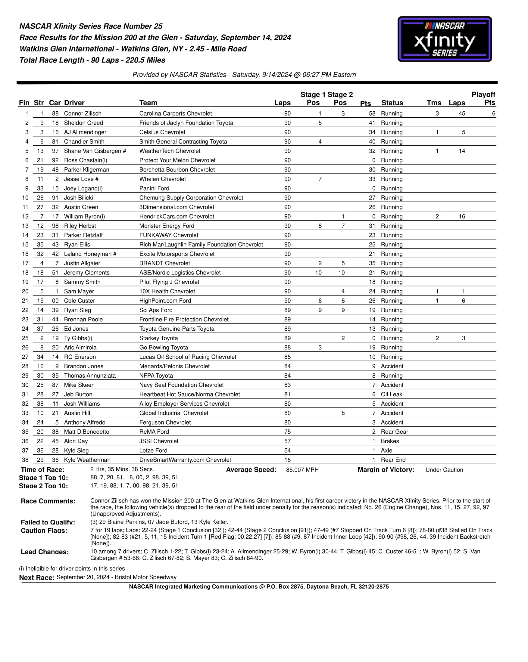 Published September 15, 2024 at 1753 × 2200 in NASCAR Xfinity Series Race Results Like Loading... ‹ Return to post Leave a comment Cancel reply Δ