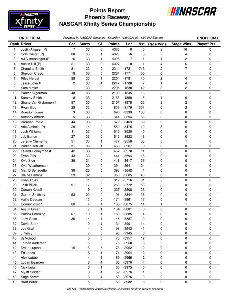 NASCAR Xfinity Series Standings Share this: Click to share on X (Opens in new window) X Click to share on Facebook (Opens in new window) Facebook Like Loading...