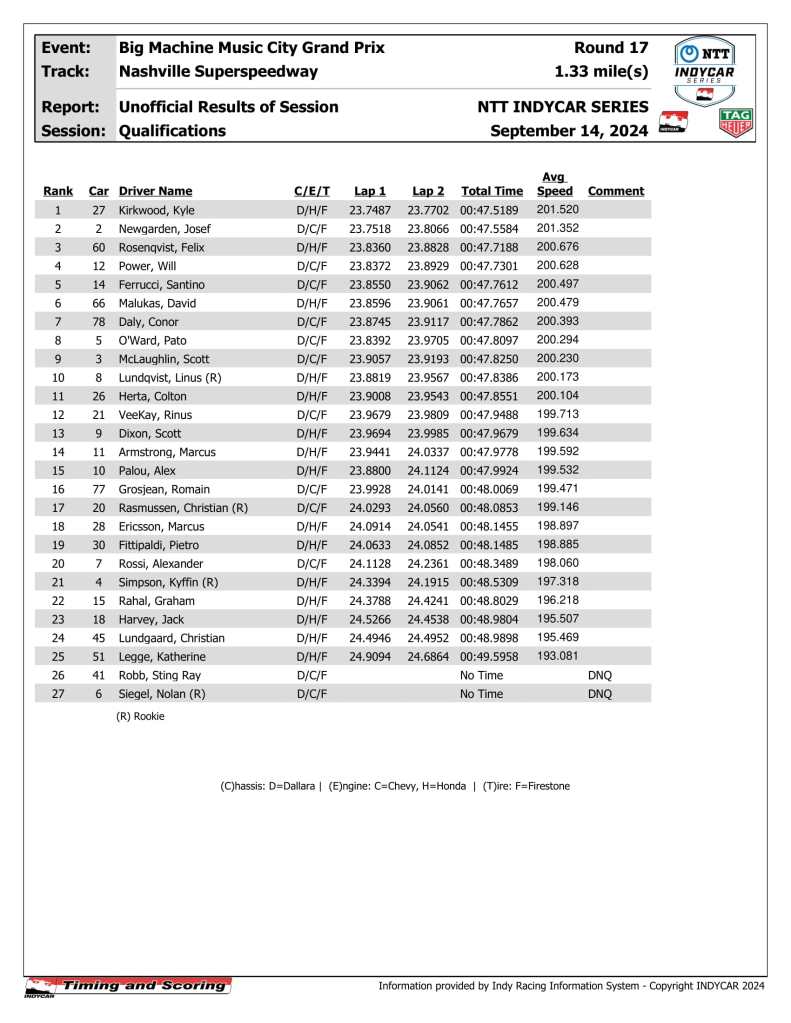 NTT IndyCar Series Qualifying Results Share this: Click to share on X (Opens in new window) X Click to share on Facebook (Opens in new window) Facebook Like Loading...