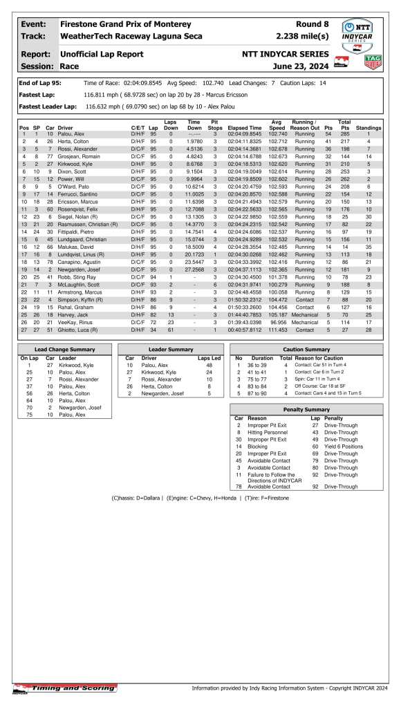 Lap Leaders: Palou, Alex 1 – 20