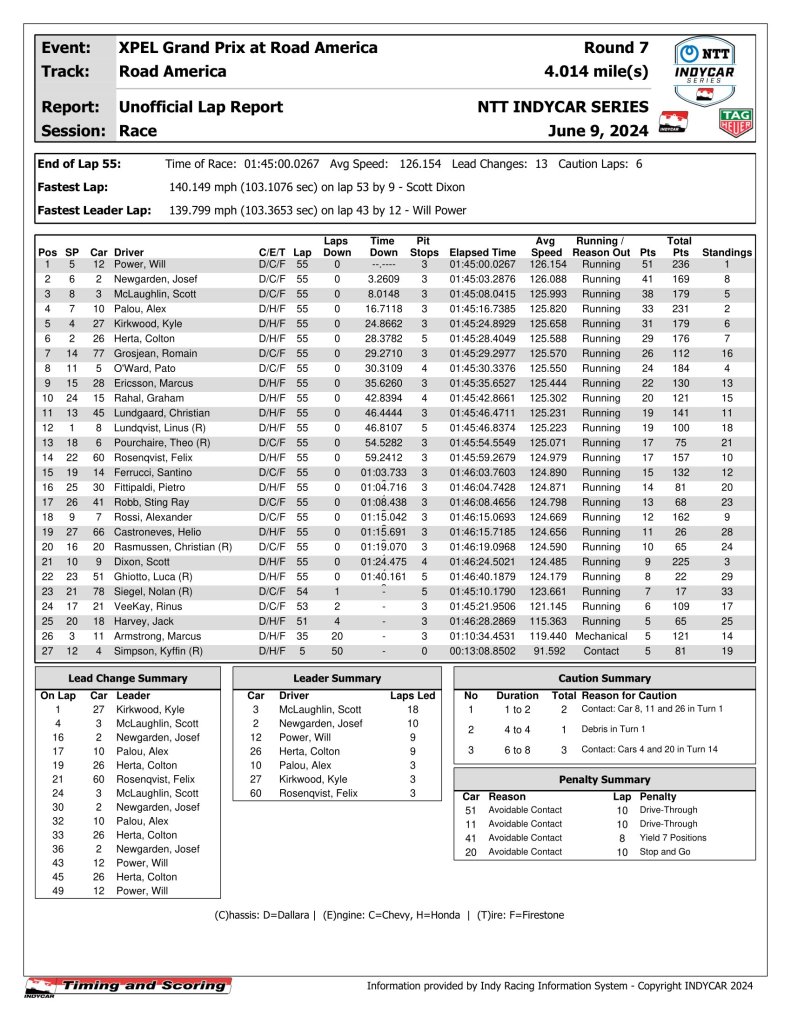NTT IndyCar Series Race Results
