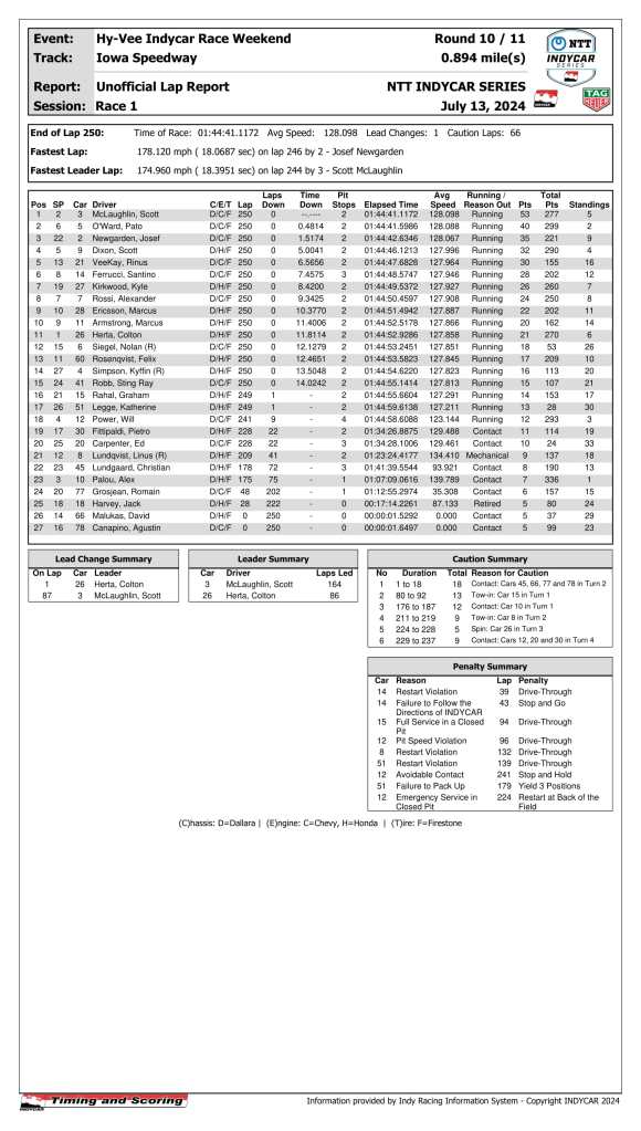 12. (8) Pietro Fittipaldi, Honda, 0, Disqualified