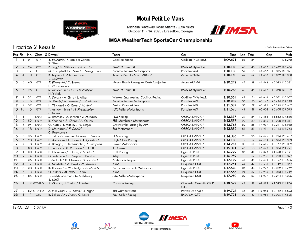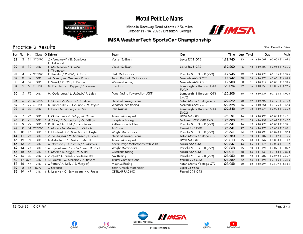 WeatherTech Championship Practice Results Share this: Click to share on X (Opens in new window) X Click to share on Facebook (Opens in new window) Facebook Like Loading...